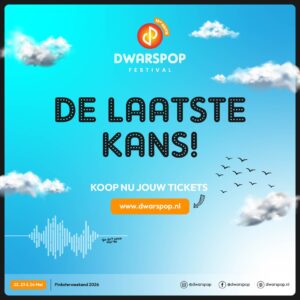 Dit is ‘m dan… De allerlaatste kans om jouw voordelige Early Bird tickets te scoren voor Dwarspop 2026! Ze zijn bijna UITVERKOCHT en dit is