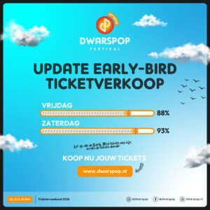 Waarom wachten en een dief zijn van je eigen portemonnee? De Early Bird ticketverkoop voor Dwarspop 2026 loopt keihard! Dit wordt de 10e editie Groter,