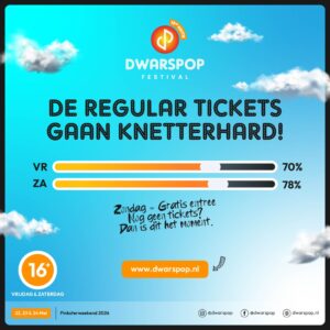 Het lijkt erop dat jullie zin hebben in Dwarspop 2026… want de ticketverkoop gaat KNETTERHARD! We kunnen het niet vaak genoeg zeggen: spijt is verstand